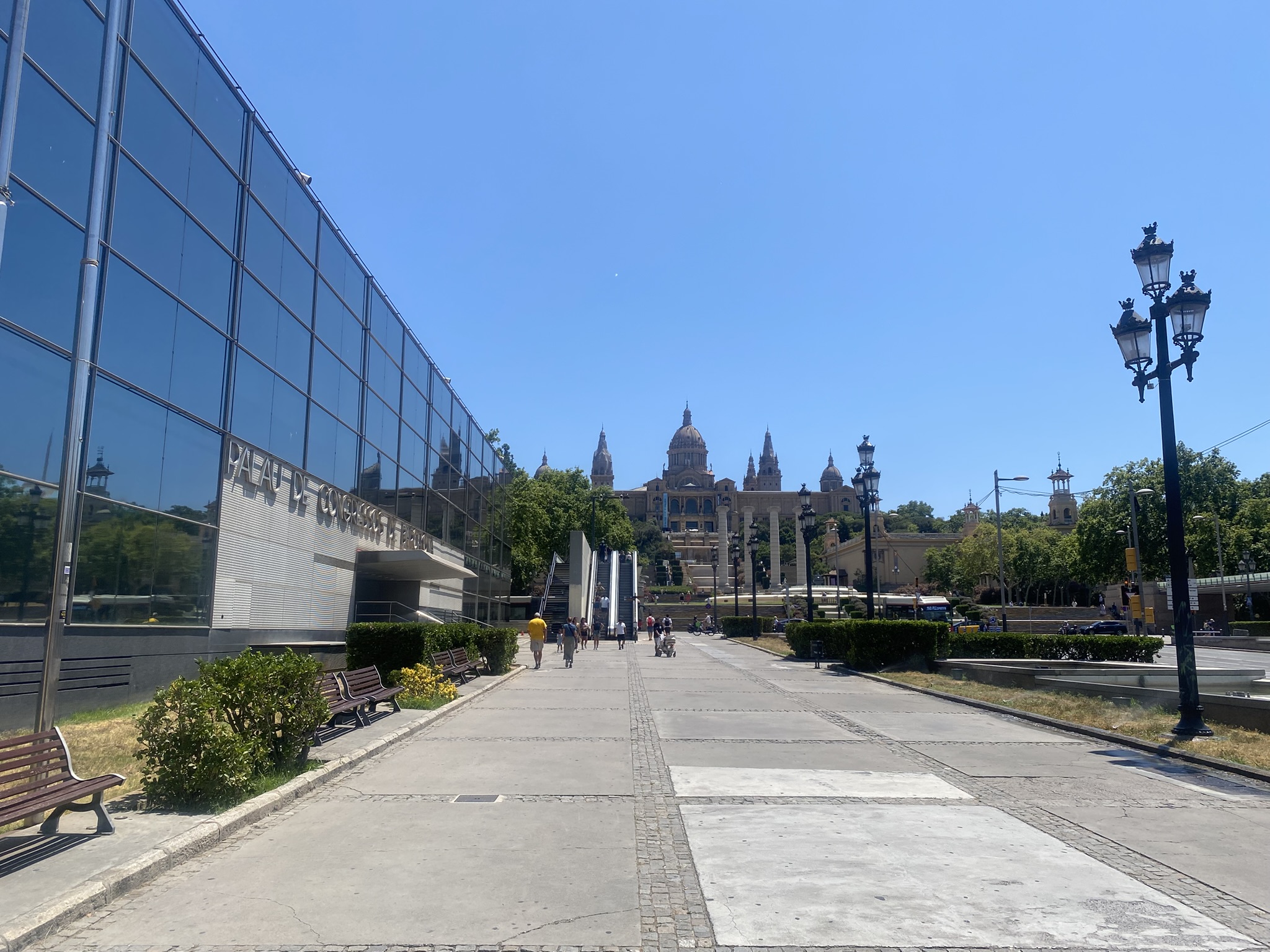 Exiting the metro, the view opened up dramatically. Ahead stood a grand, palatial building atop Montjuïc Hill, while remnants of the World Expo and Olympic Games lined both sides。 Among them, the Mies Pavilion. As one of Mies van der Rohe’s most iconic works, the original structure was dismantled after the 1929 exhibition, but was later faithfully reconstructed.