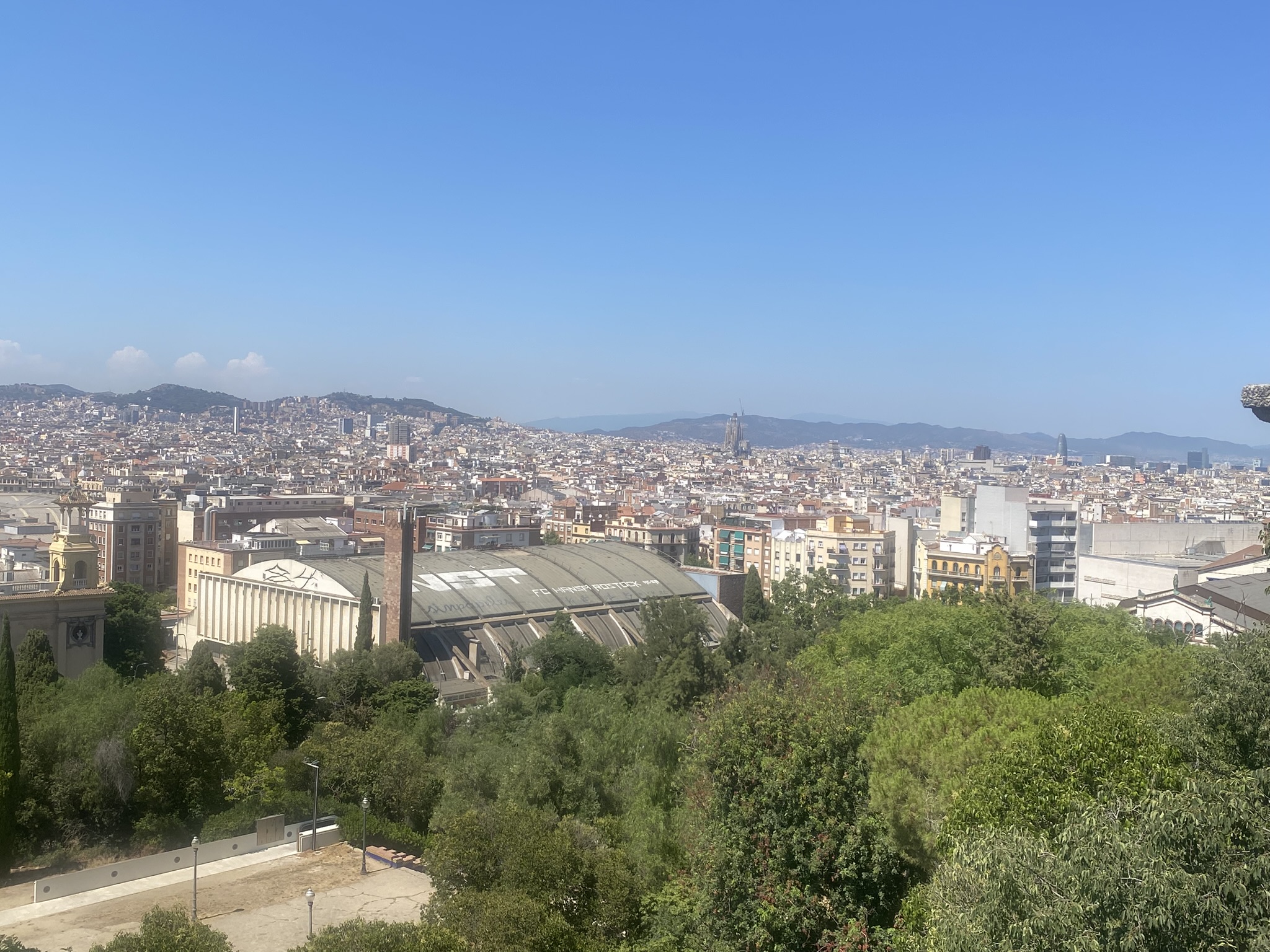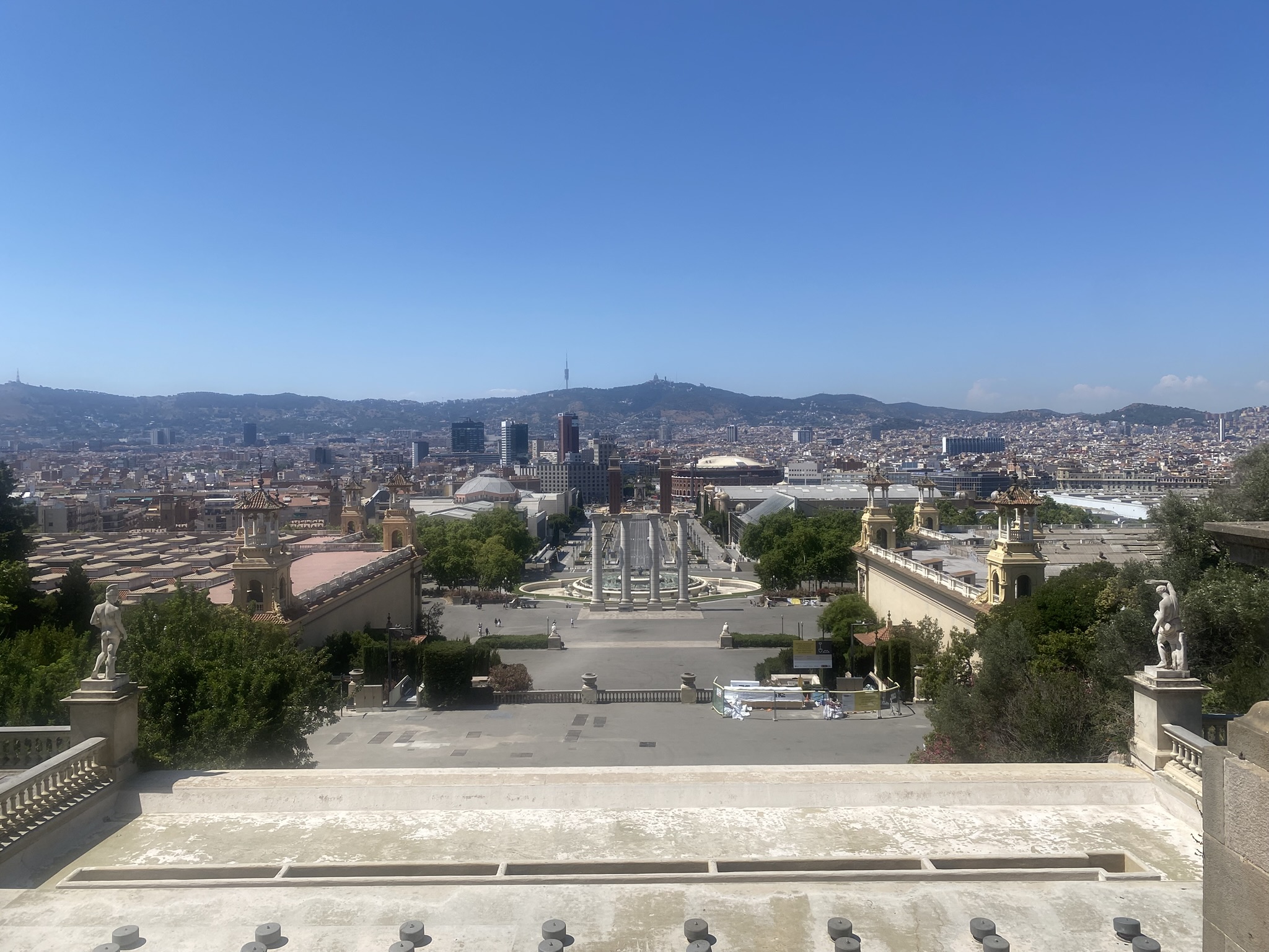 Although I hadn't done any research about the mountain beforehand, the view in front of me sparked my curiosity, and I decided to hike up and see where it led. When I reached the top, I discovered that it was actually an art museum , though unfortunately, it was closed for the day, as it was Sunday. Still, the climb was more than worth it. From this high vantage point, I had a panoramic view of the entire city of Barcelona, and I could even catch a glimpse of the distant coastline. It turned out to be a surprisingly rewarding detour.