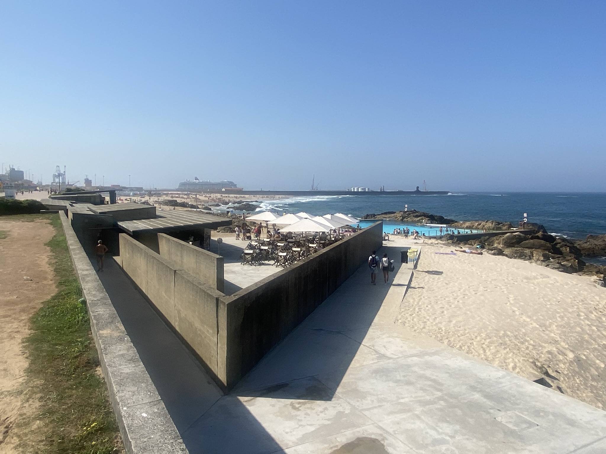 After getting off at the stop near my destination, I walked along the coast and soon passed by Piscina das Marés. I had always thought of it simply as a man-made pool by the sea, but seeing it in person completely reframed my impression. The true brilliance lies not in the pool itself, but in the carefully choreographed sequence: from the entrance and changing rooms to the internal views of the pool. That spatial rhythm, that subtle unfolding of experience, is exactly what defines Siza’s architecture. It was a bit of a shame I hadn’t brought swimwear. Otherwise, I could have gone inside to explore it more fully.