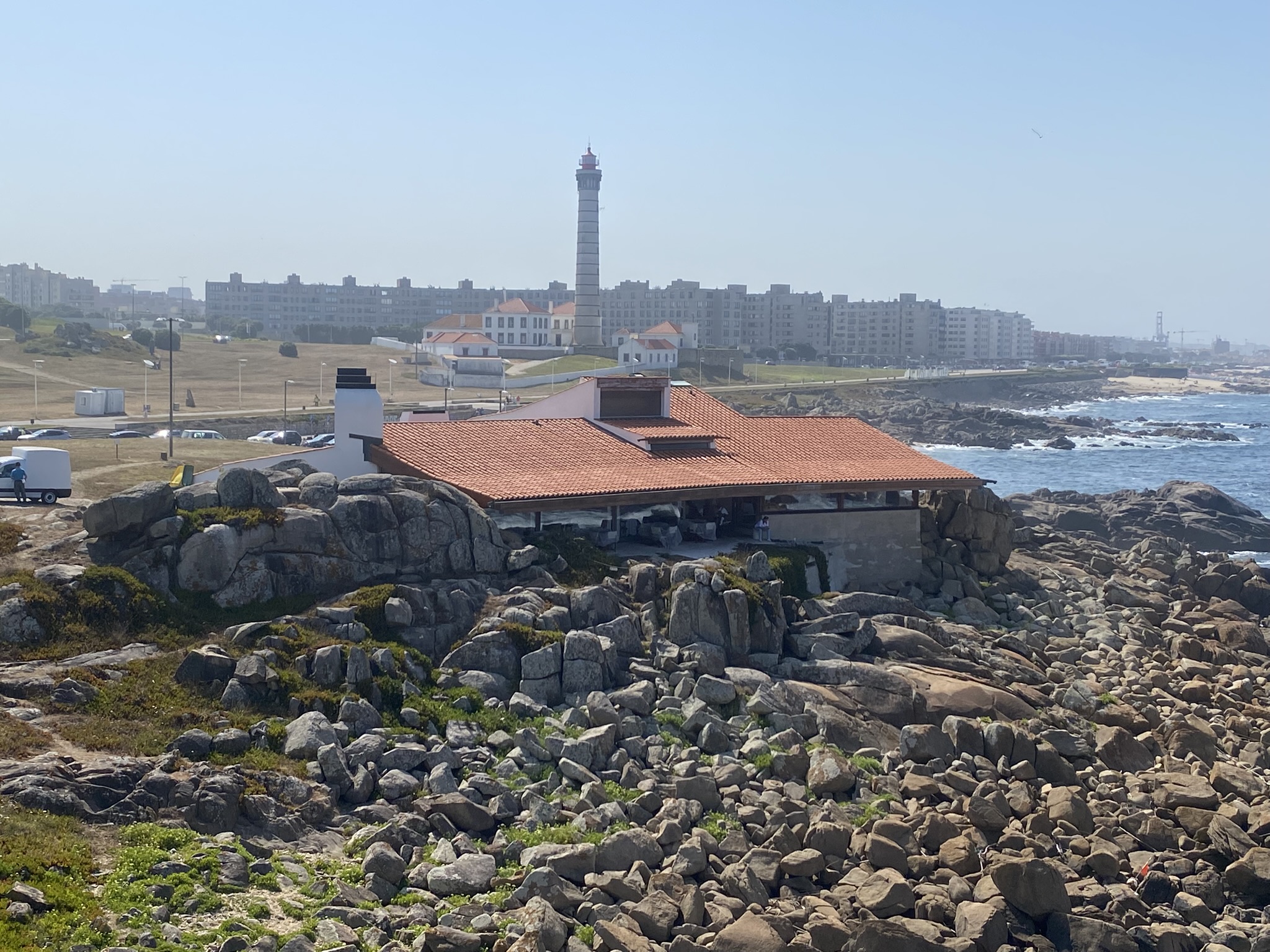 Continuing along the coast, I finally arrived at Casa de Chá da Boa Nova. It looked exactly as I had studied in architectural casebooks, yet standing before it in person, perched on the rocks, framed by the vast Atlantic. It felt even more harmoniously embedded in the landscape. The architecture didn’t just sit in nature; it belonged to it. The building has since been converted into a Michelin-starred restaurant. Sadly, with my current budget, I couldn’t afford to dine there. So I admired it from the outside, hoping one day I’ll return to experience the interior as well.