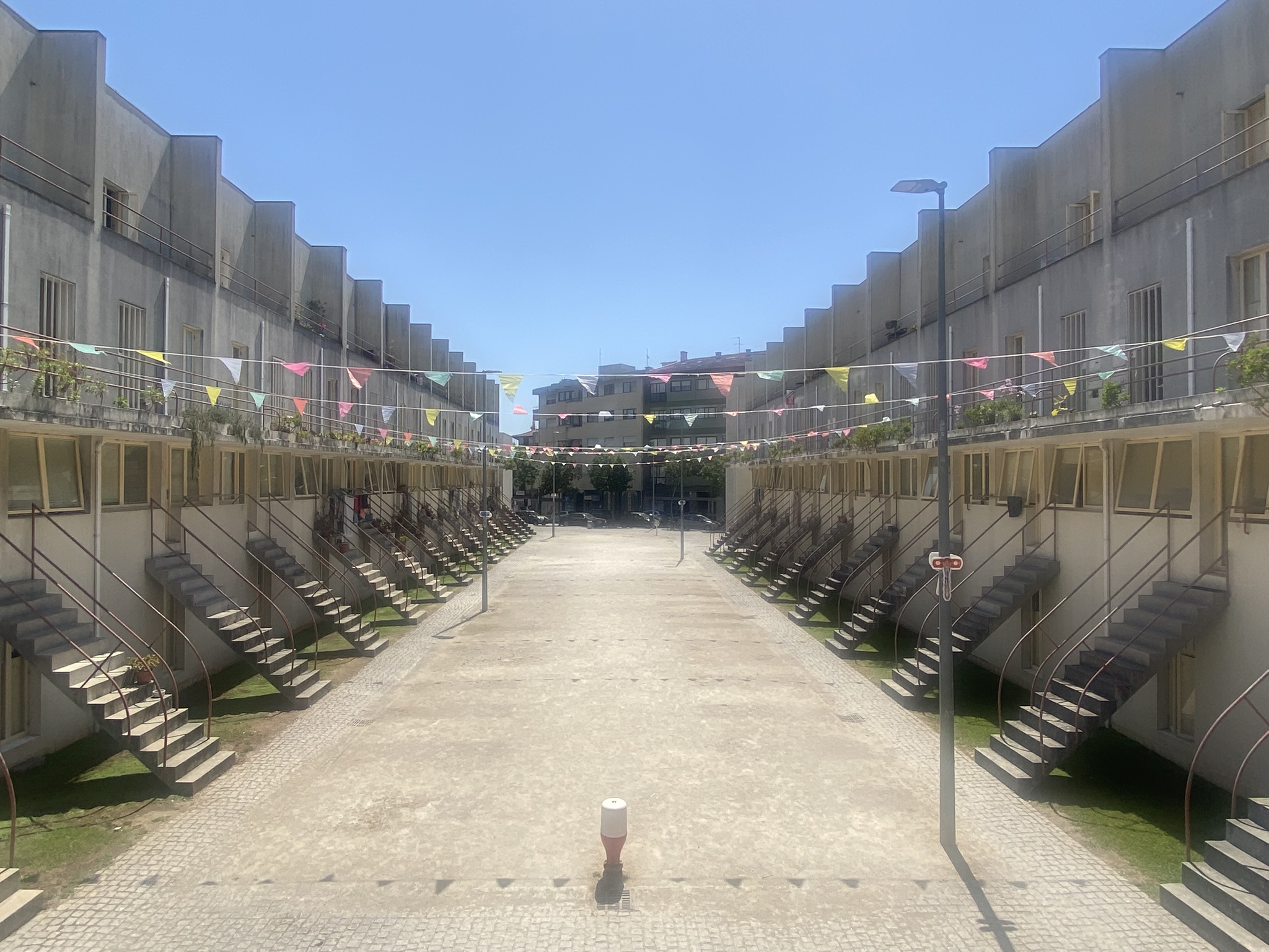 After lunch, I visited the Bouça Housing Complex, a social housing project designed by Siza. Rows of studio-type townhouses stretch in parallel lines, with two main buildings creating a long, narrow communal courtyard in between. But under the blazing summer sun, the courtyard stood completely empty. Not a soul in sight. The heat had driven everyone indoors, and the space, while thoughtfully designed, felt unusually still.