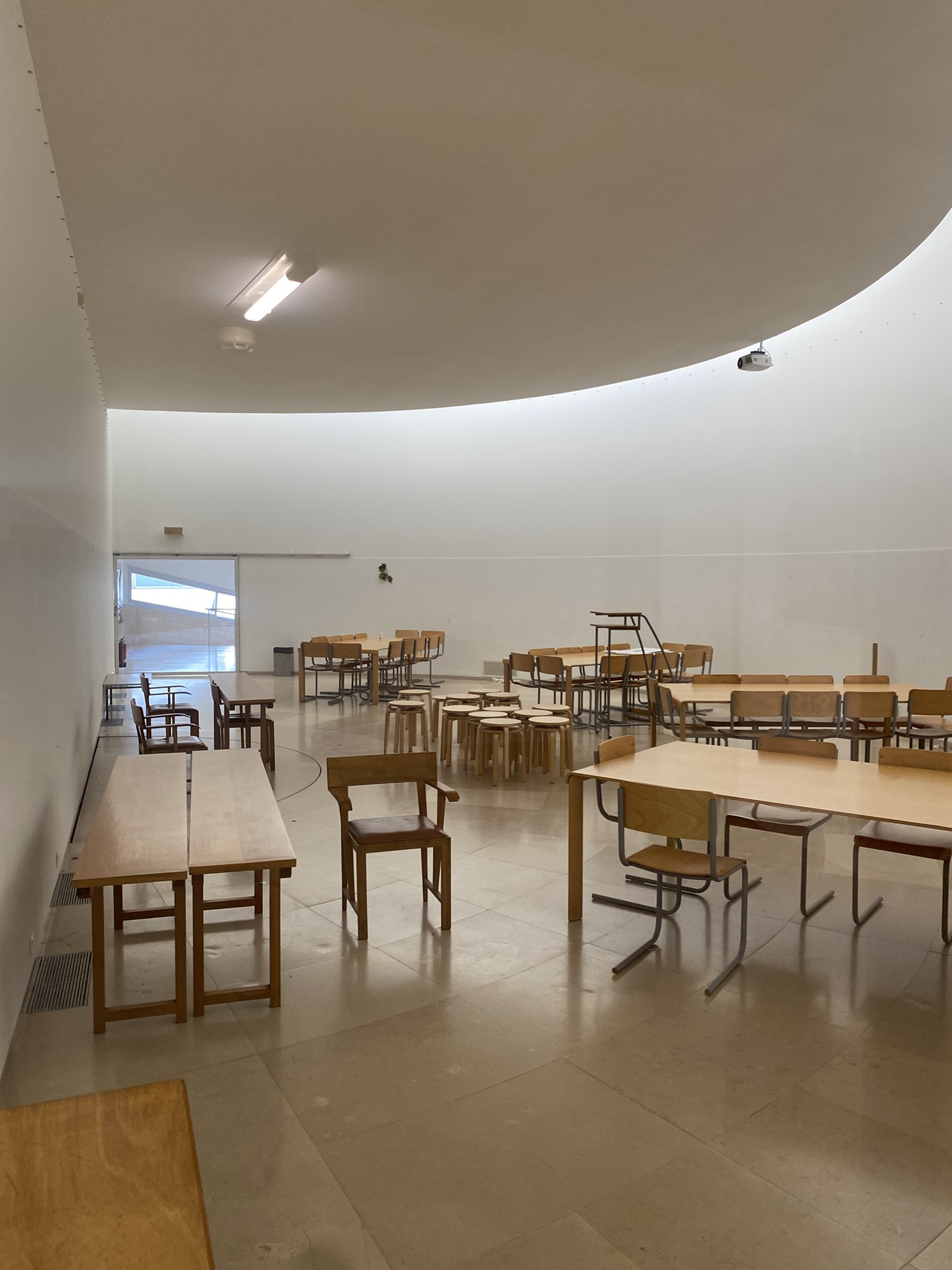 The building itself is so Siza. Signature curved forms, ramps, clean white volumes, and skylights that diffuse soft natural light: it was like walking through a checklist of Siza’s design language. Until now, I’d mostly seen these elements in his museum projects. But in a way, an architecture school also needs to function like a series of small exhibition spaces. Perhaps that’s exactly why the building feels so appropriate. To study architecture inside a Siza building: what a privilege that must be.