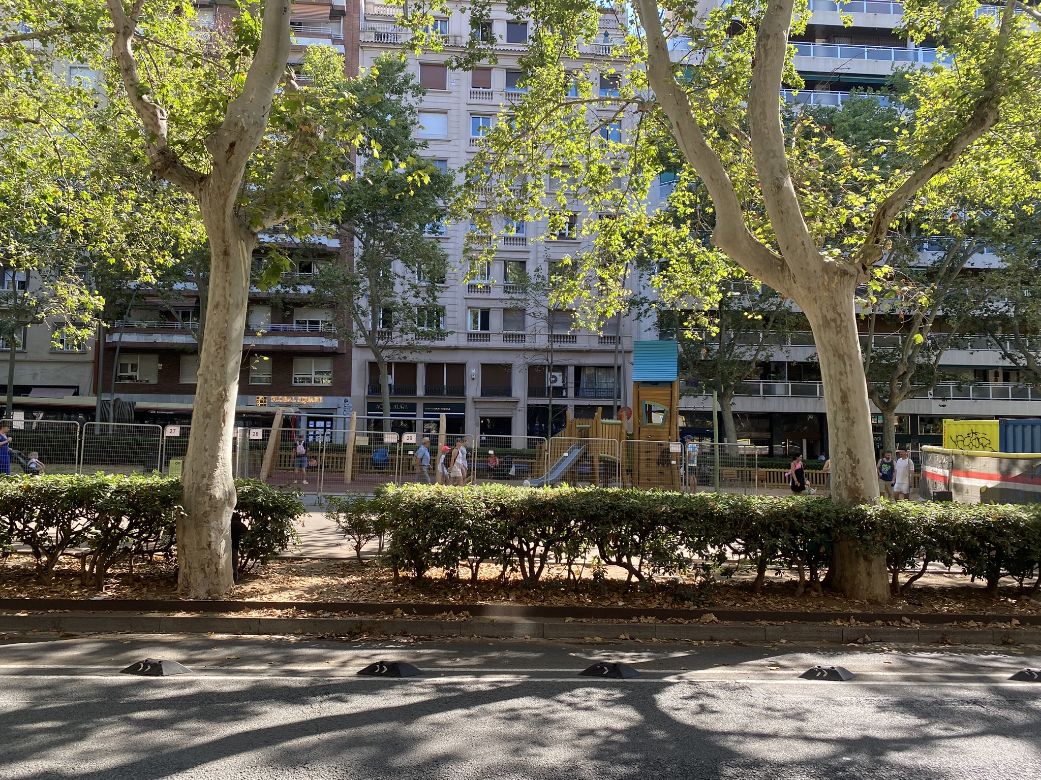 Since check-in wasn’t until 3 PM, I dropped off my luggage and wandered around the neighborhood. Barcelona’s grid-like city planning is famous, but what stood out to me even more was how walkable everything felt. The streets are wide, yet most are designated as one-way, leaving generous space for pedestrians and bikes. There are continuous bike lanes, shaded benches under the trees, and play areas for children scattered throughout the city.