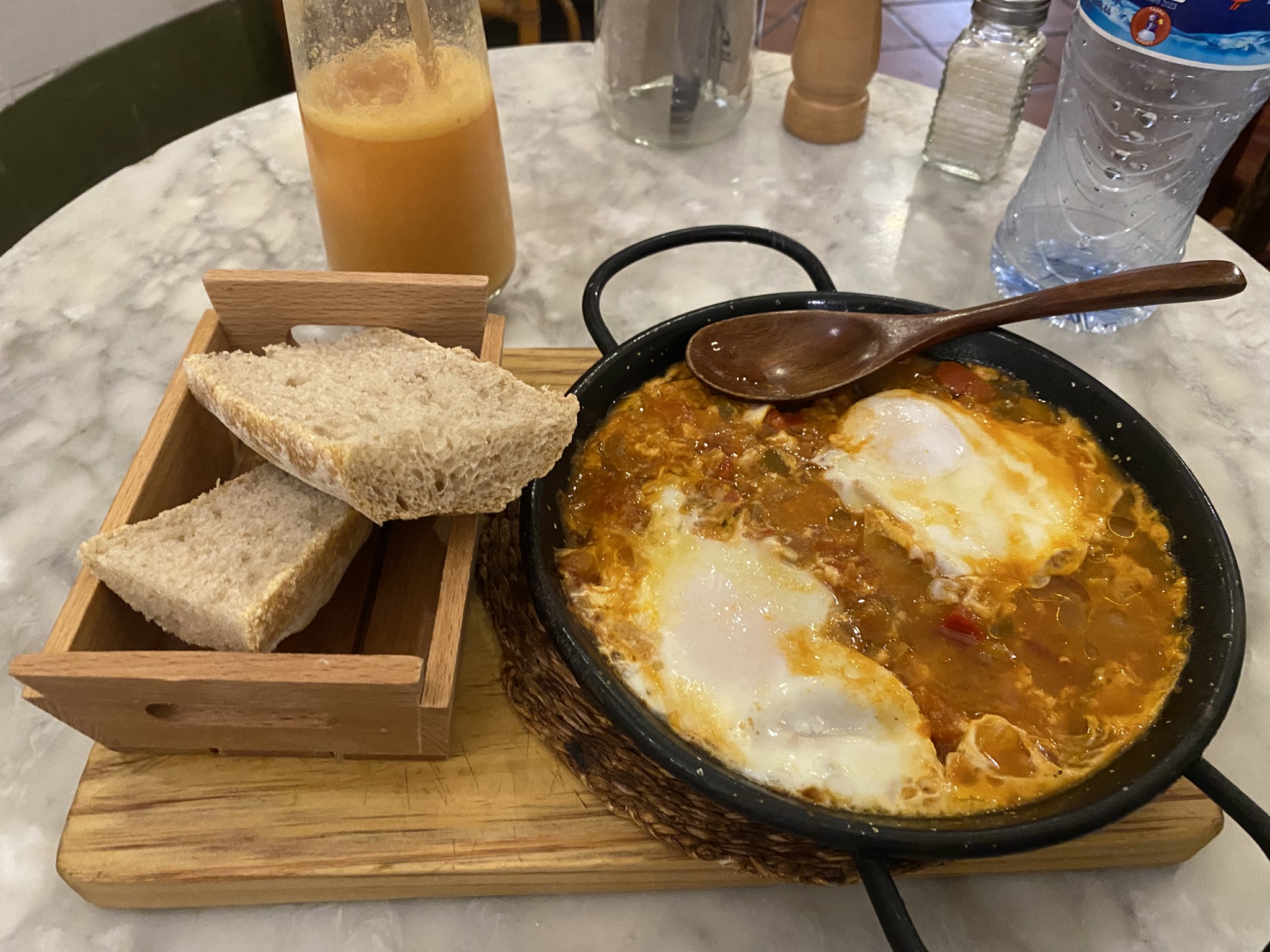 For lunch, I went to Billy Brunch Headquarters and had a delicious smoothie made with strawberry, banana, and orange, along with a flavorful shakshuka. I usually roll my eyes at the whole “brunch aesthetic” and its bourgeois vibes. But I have to admit, the food was genuinely great, and the waitress was super accommodating.