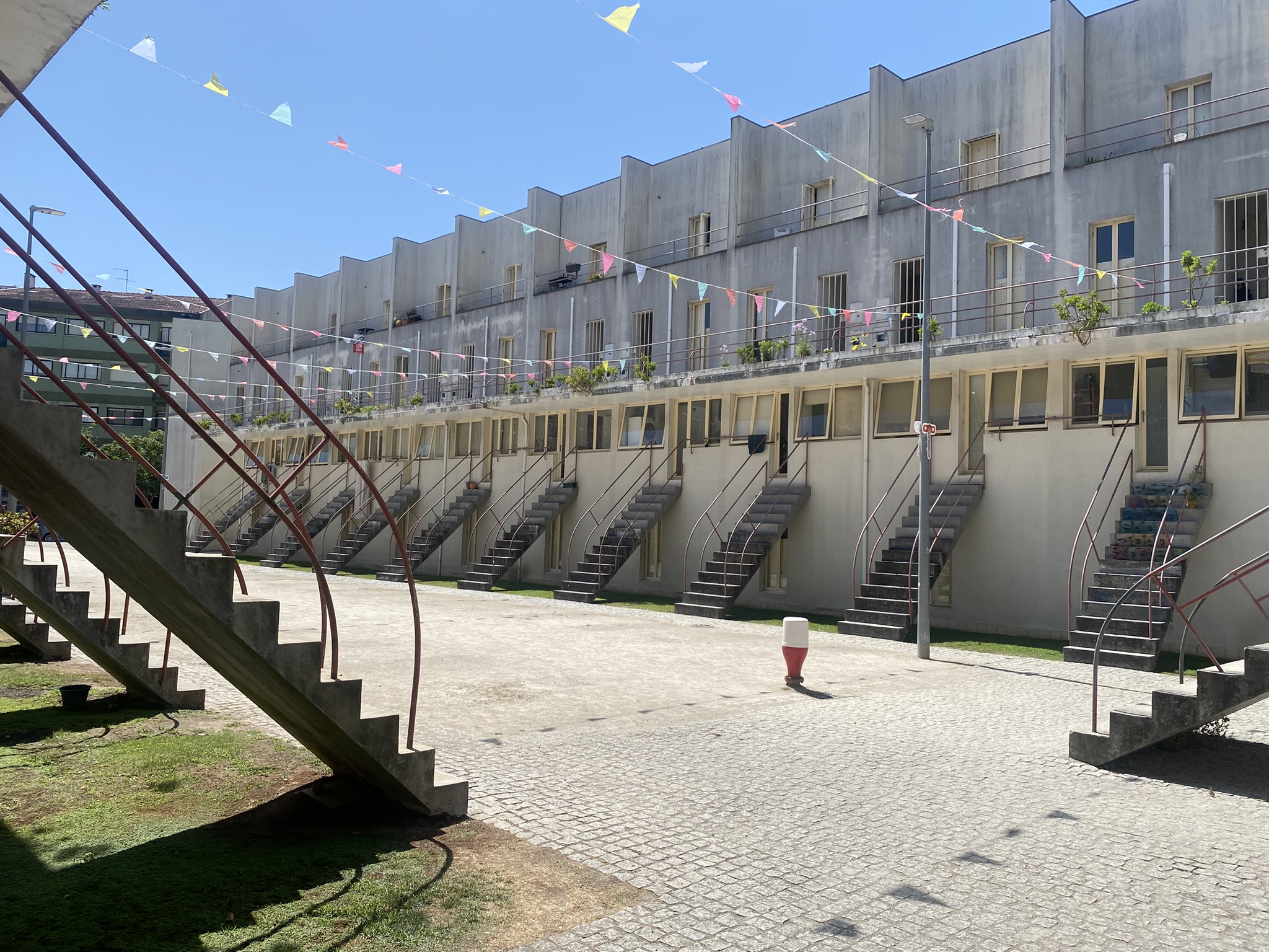 After lunch, I visited the Bouça Housing Complex, a social housing project designed by Siza. Rows of studio-type townhouses stretch in parallel lines, with two main buildings creating a long, narrow communal courtyard in between. But under the blazing summer sun, the courtyard stood completely empty. Not a soul in sight. The heat had driven everyone indoors, and the space, while thoughtfully designed, felt unusually still.