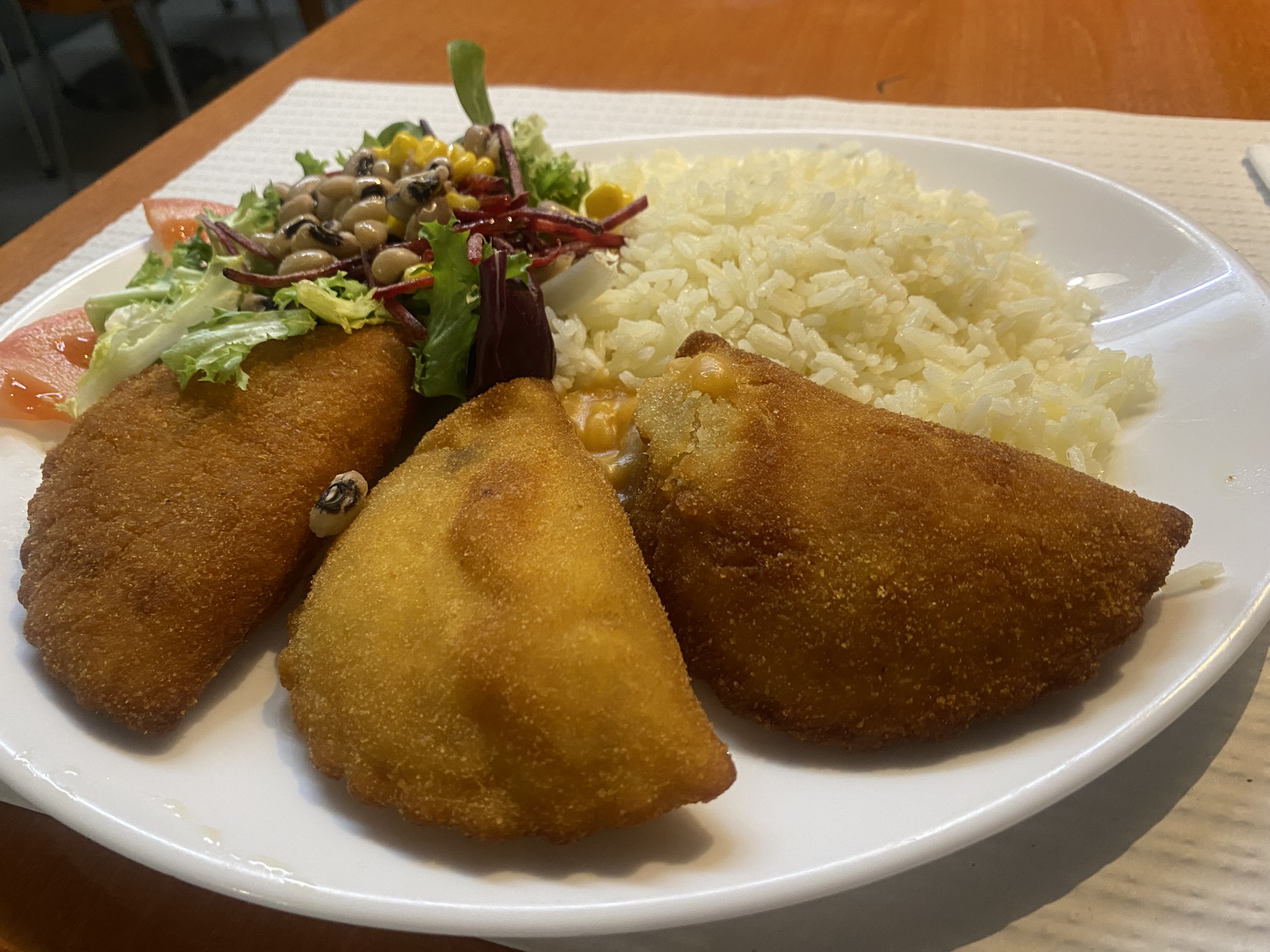 Then came the main dish: a massive plate piled high with assorted meats, salad, and rice. The rice was slightly undercooked, and the flavors across the board were pretty muted, but the portion size was so enormous it managed to shock even me, someone who grew up in a region known for generous servings.